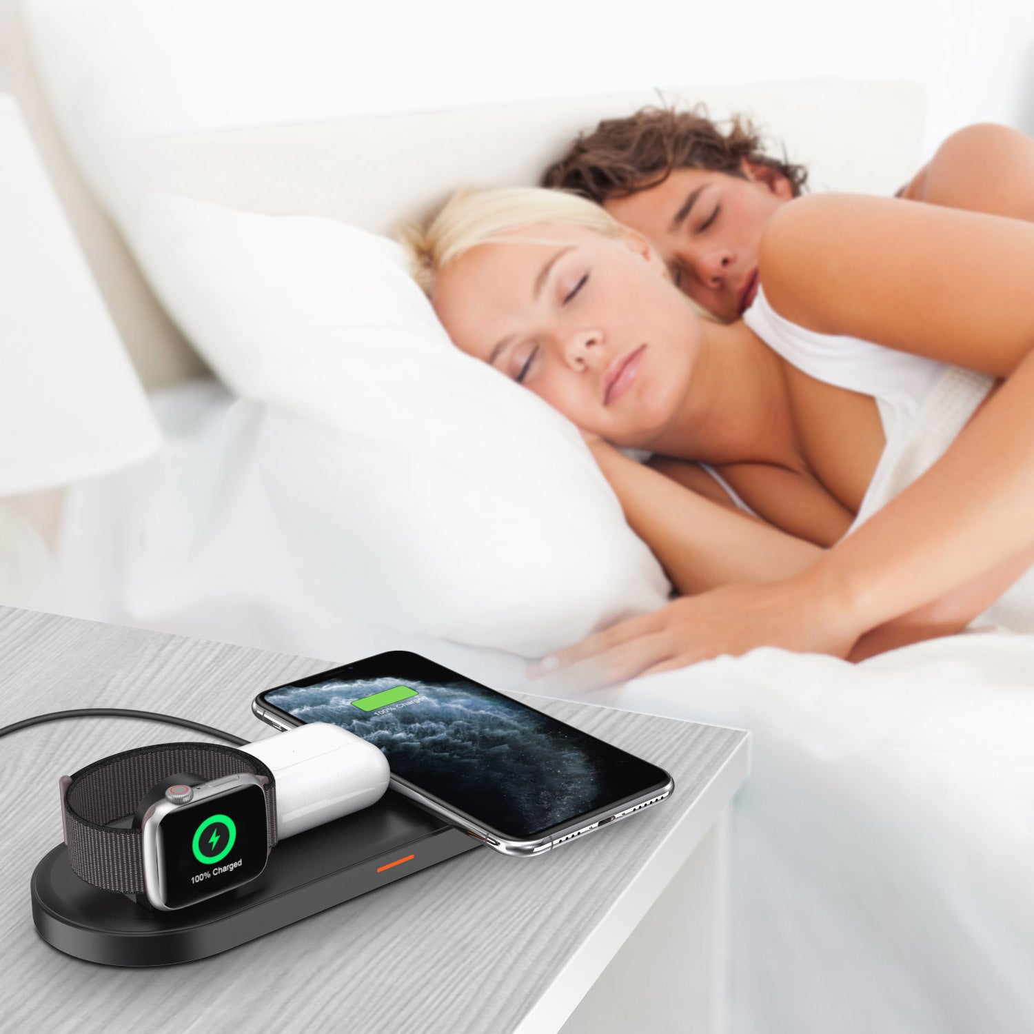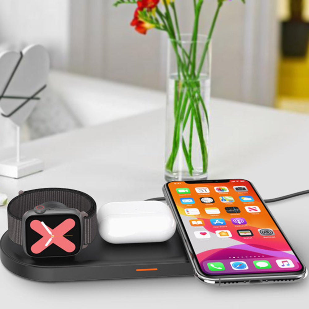 W28 3-in-1 Desktop 15W Wireless Charger for Phone Watch Headset Folding Fast Charging Base