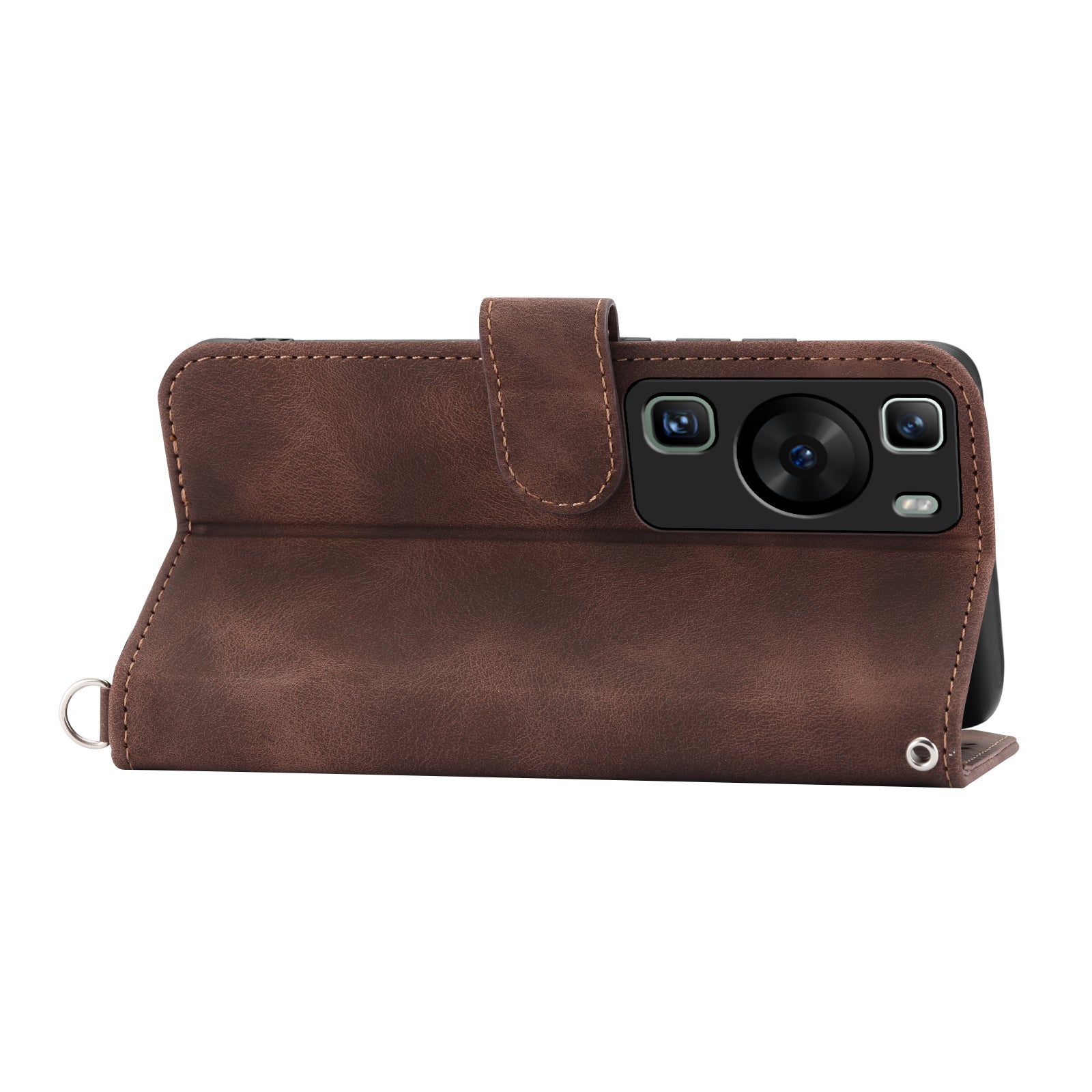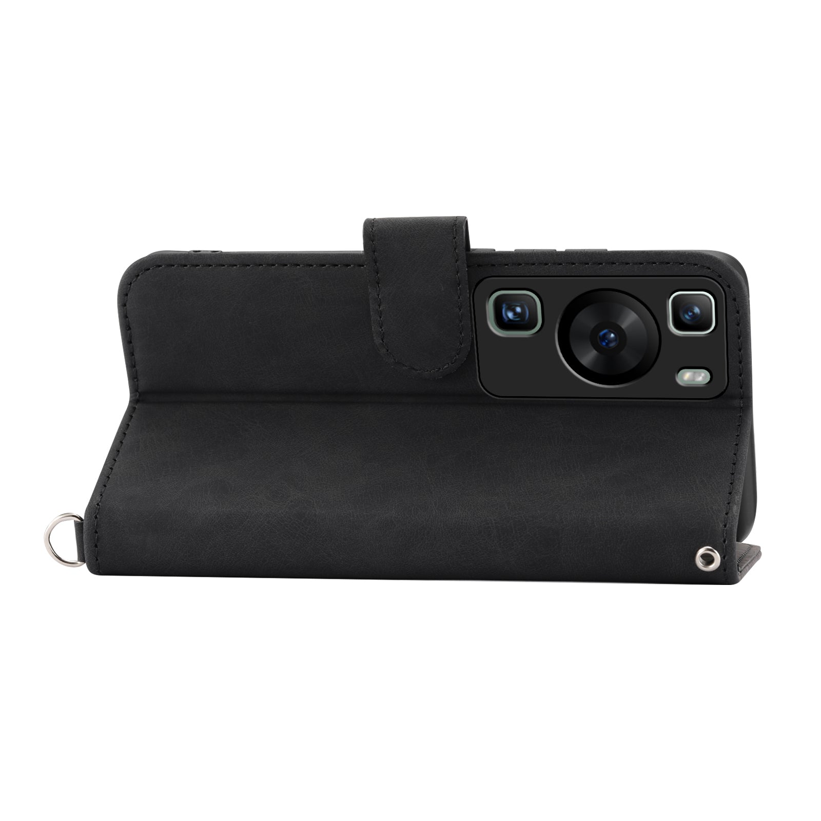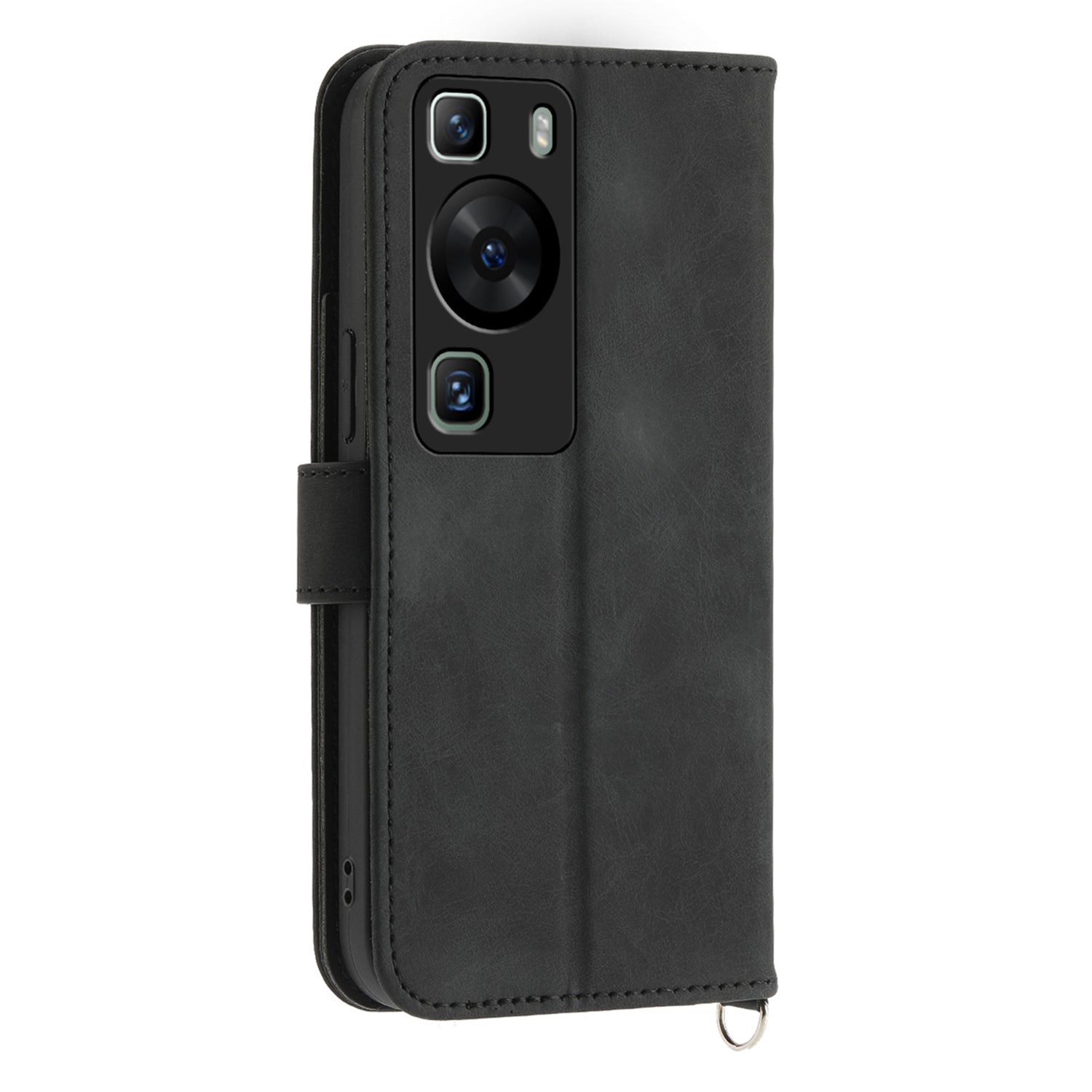 Wallet Phone Case for Huawei P60 / P60 Pro Shockproof Case Skin-Touch Imprinted Flower Leather Flip Cover with Strap