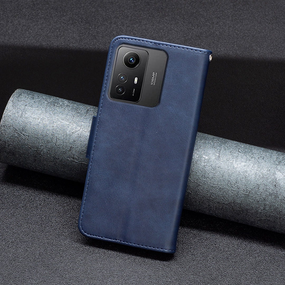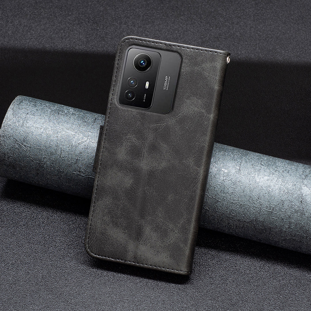 Wallet Phone Case for Xiaomi Redmi Note 12S 4G , Textured Stand Shell Solid Color PU Leather Cover