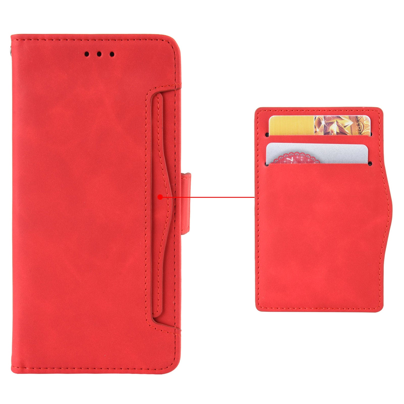 - Features 3 card slots and 1 cash pocket on the inside + separately taken-out card holder on the outside, really big capacity
