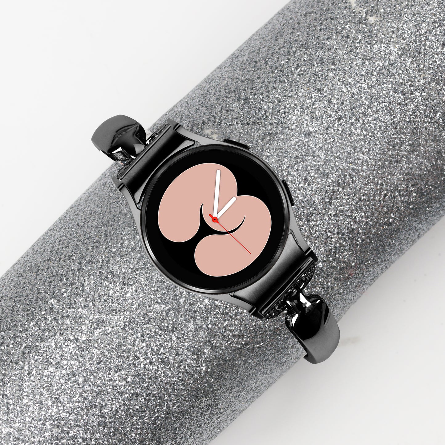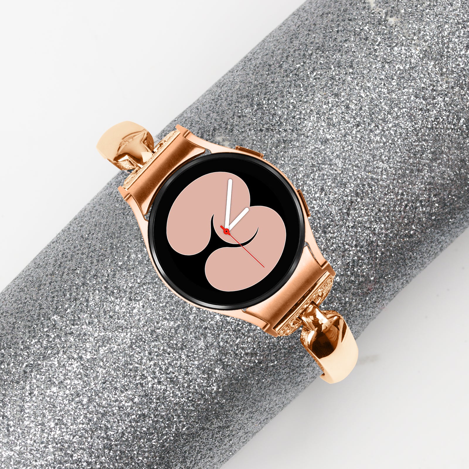 Watch Band for Samsung Galaxy Watch 6 40mm 44mm , D-shaped Rhinestone Decor Copper Metal Bracelet with Connector