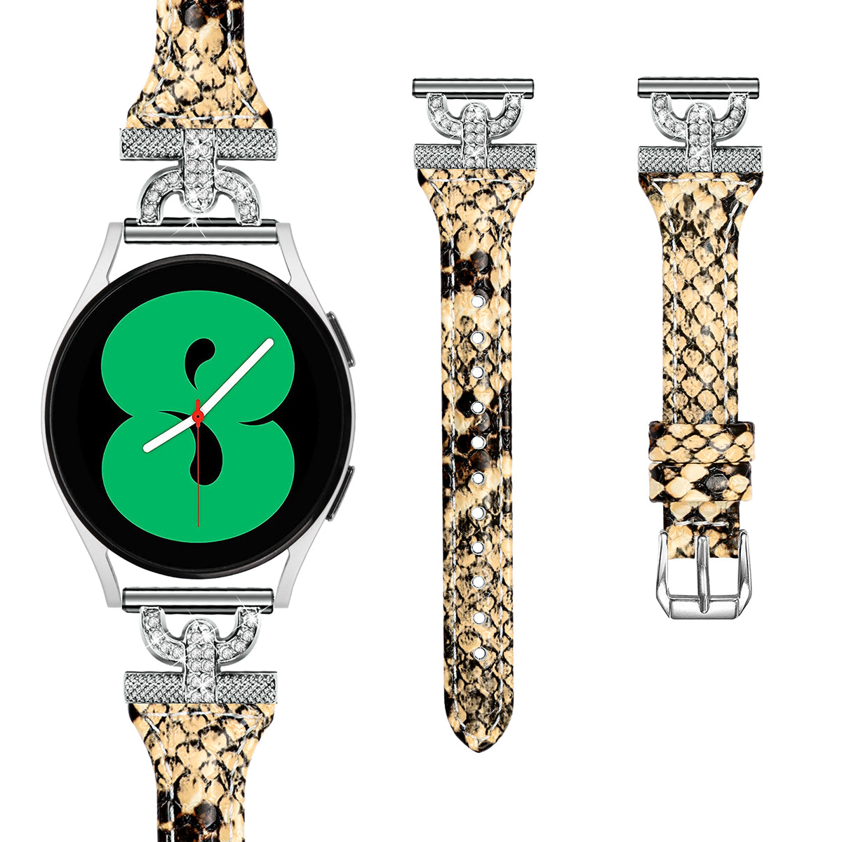 Watch Band for Samsung Galaxy Watch Active 1 / 2 / 3 40mm 44mm , 20mm Genuine Cow Leather Rhinestone Decor Strap with Silver Buckle