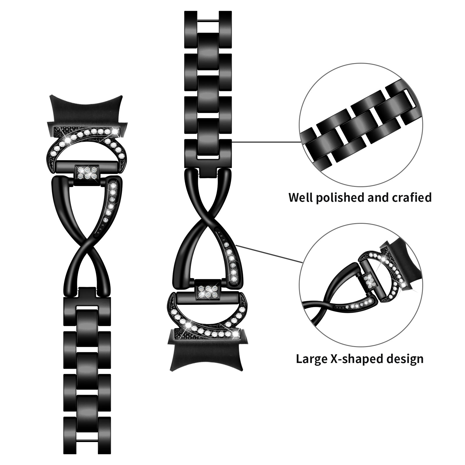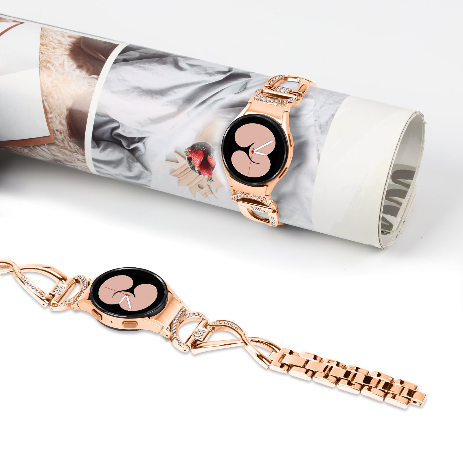 Watch Band for Samsung Galaxy Watch6 40mm 44mm / Watch6 Classic 43mm 47mm / Watch 5 40mm 44mm / Watch4 40mm 44mm Rhinestones Decor Alloy Wrist Strap with Connector
