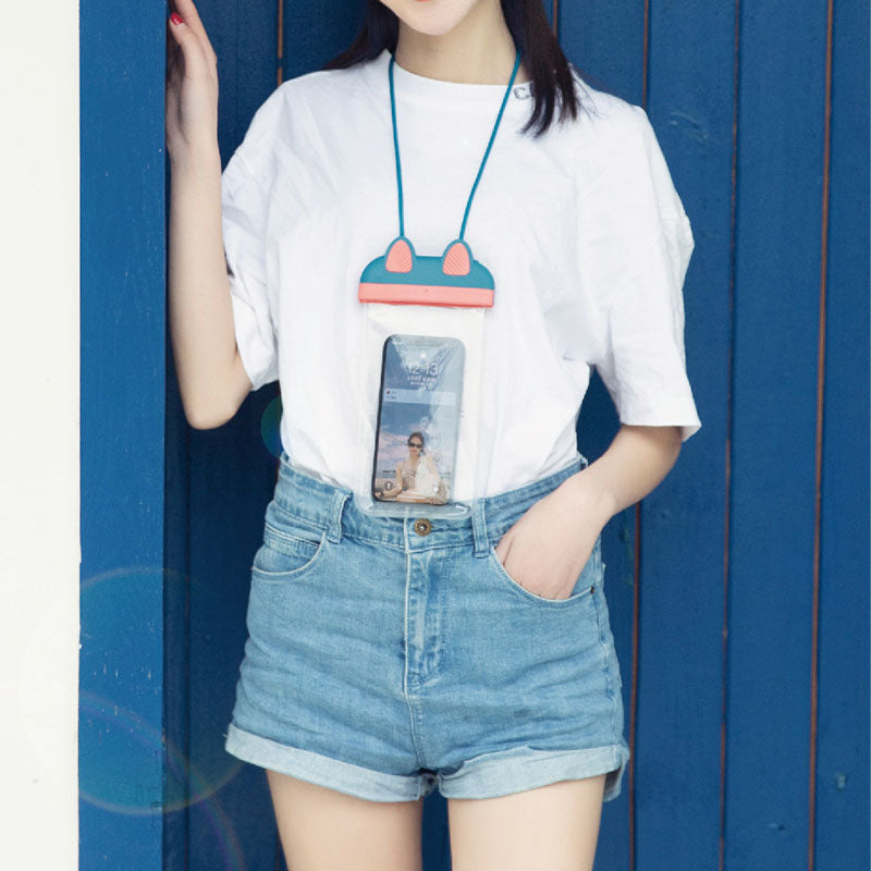 Waterproof Phone Pouch Fits Up to 7 Cell Phone Cute Cat IPX8 Phone Protector Clear TPU Dry Bag Screen Touch Sensitivity