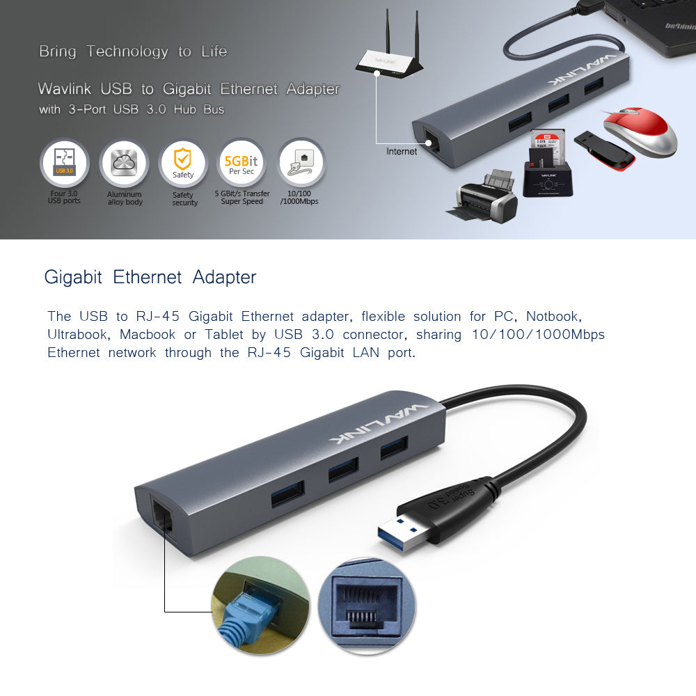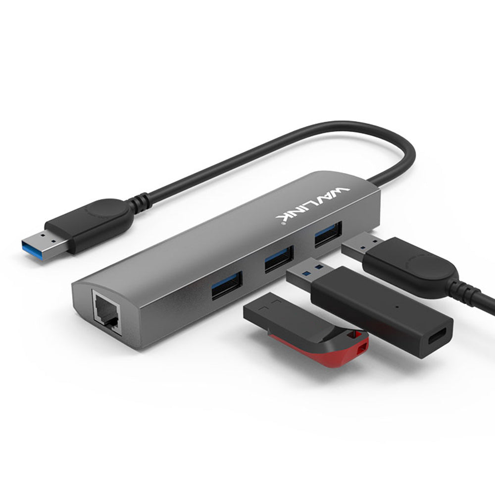 WAVLINK UH3031G USB 3.0 Docking Station 4-Port Hub Adapter USB to RJ45 Gigabit External Splitter Converter