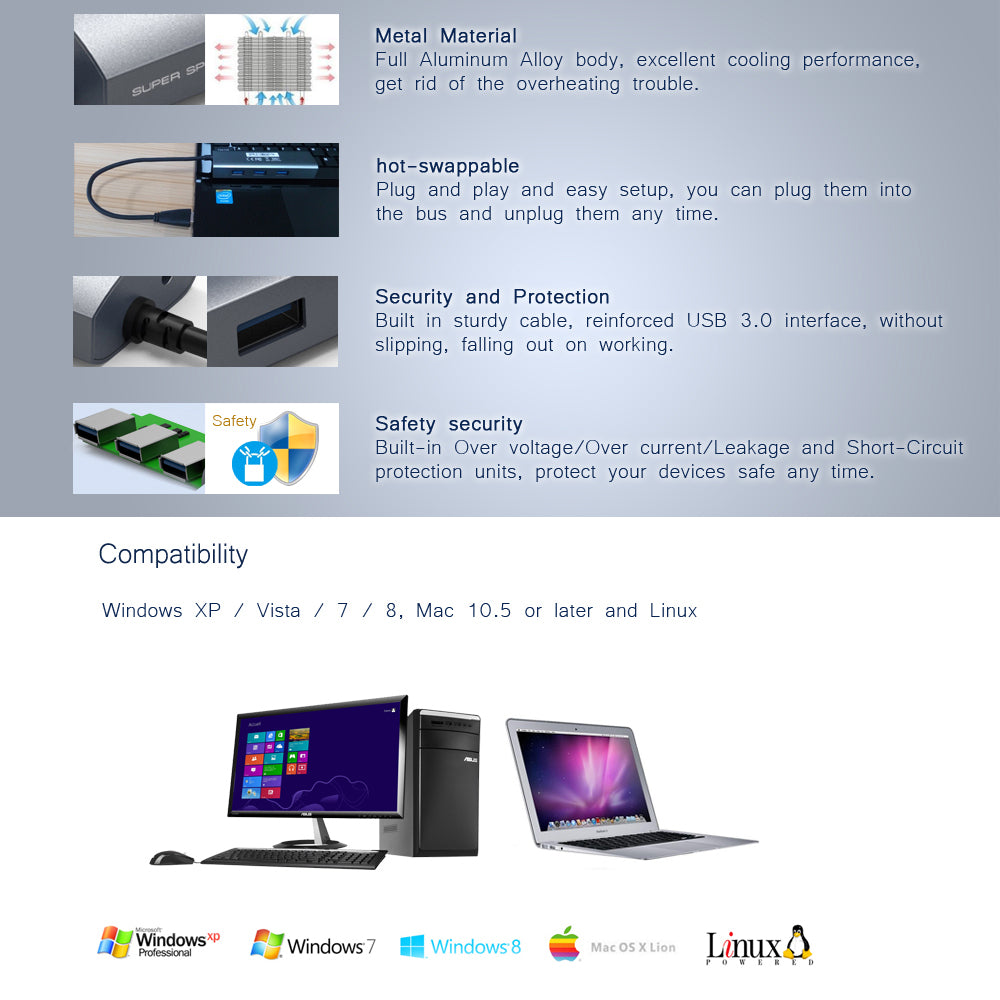 - Working standard: USB 3.0 5Gbps transmission standard.