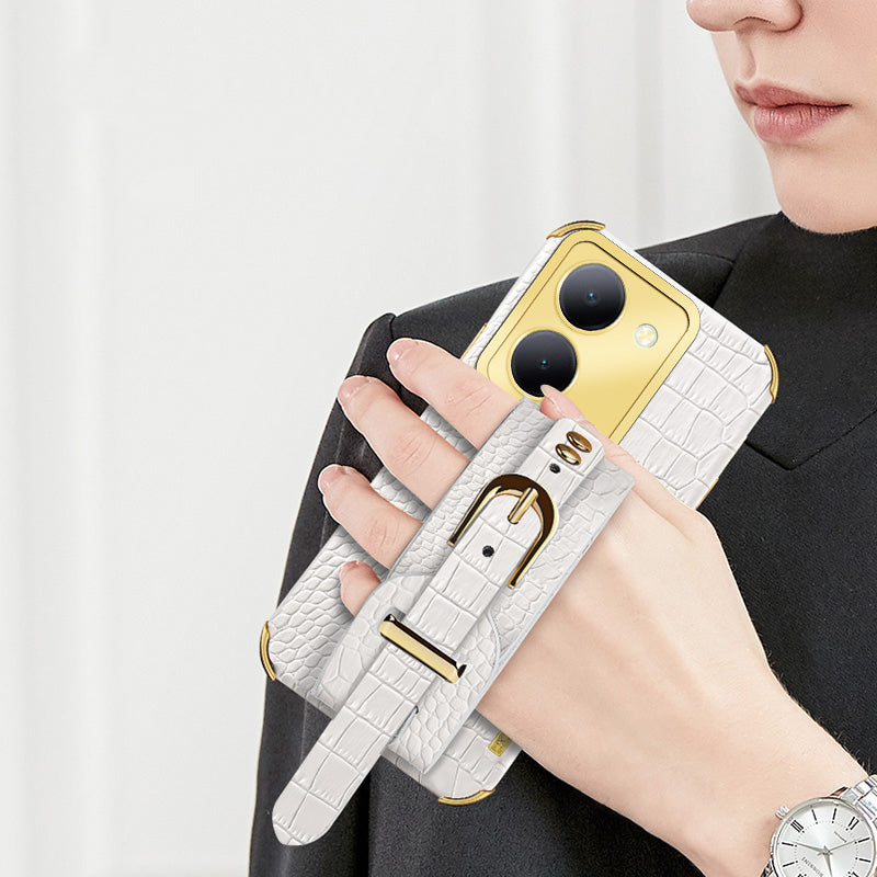 Wristband Kickstand Phone Case for vivo Y78 5G , PU Leather Coated TPU Electroplating Phone Cover