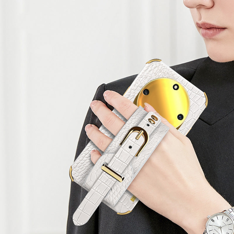 Wristband Kickstand Phone for Honor X40 5G , Electroplating PU Leather Coated TPU Anti-drop Cover