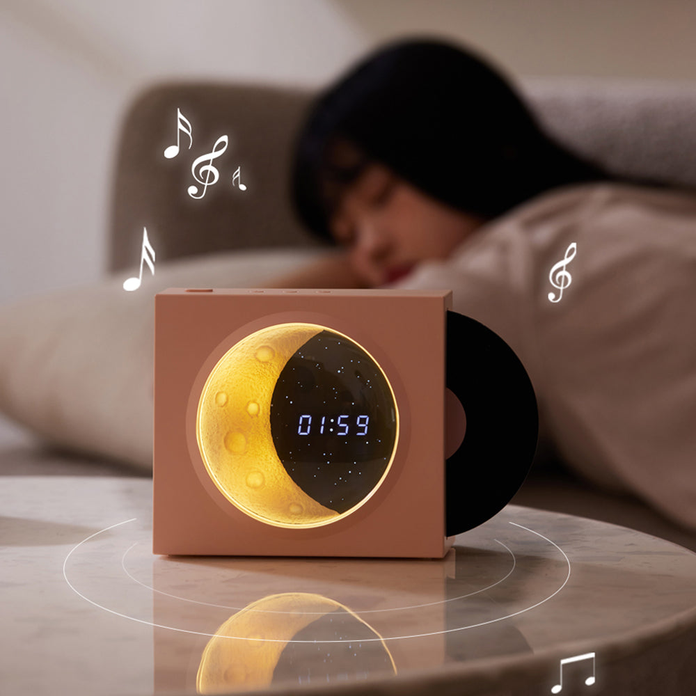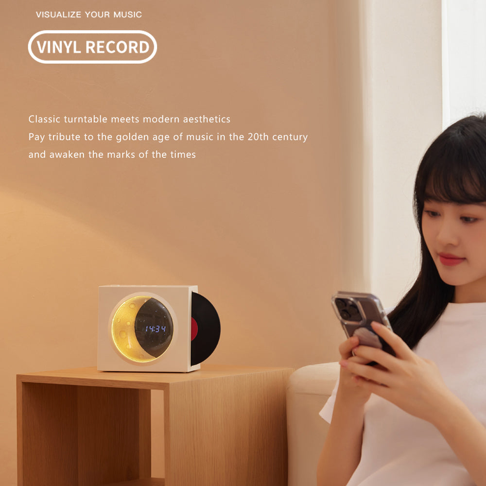 X09 Vinyle Plate Moon Style Alarm Clock Bluetooth Speaker Stereo Sound Wireless Subwoofer