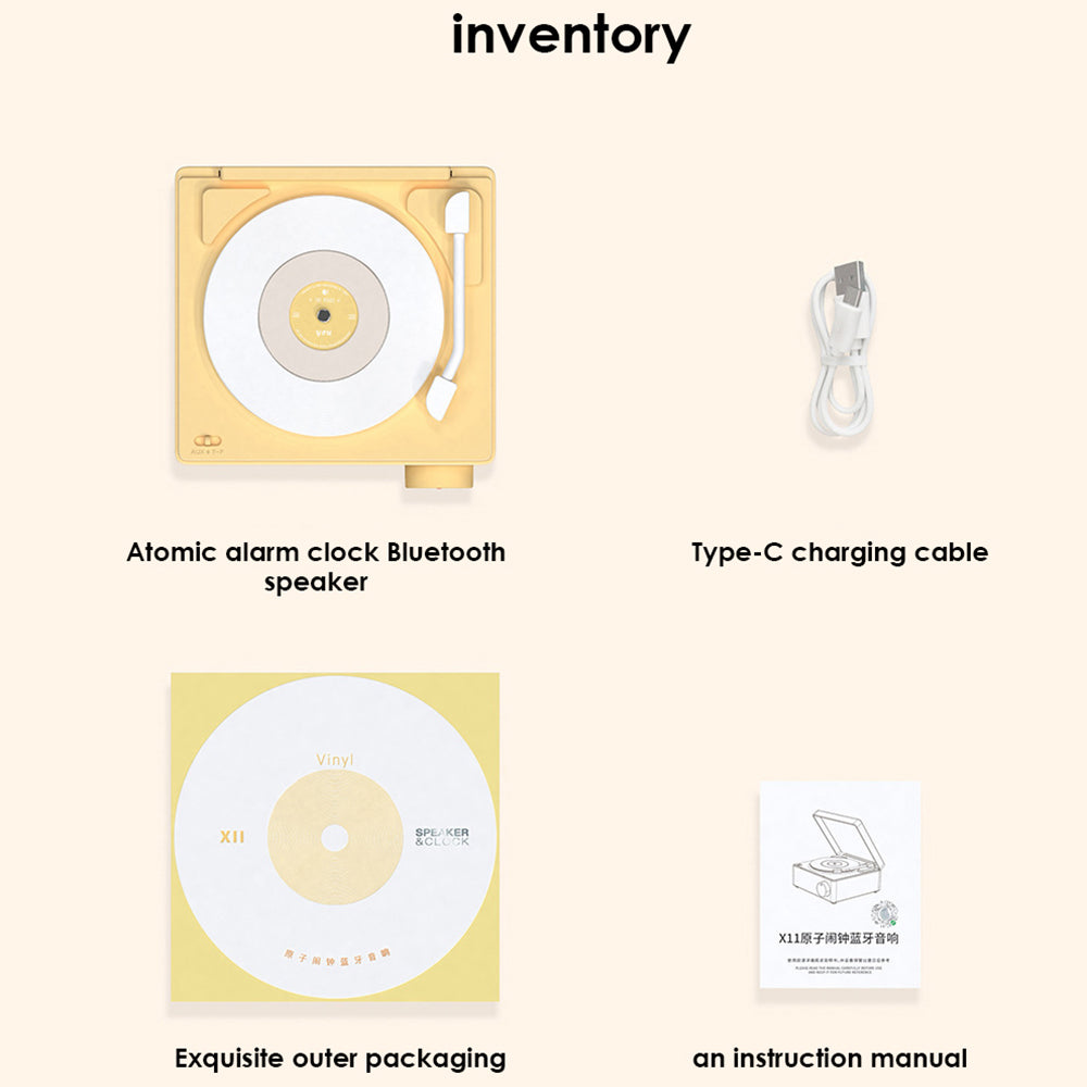 X11 Clock Vinyl Record Player Turntable Player Stereo Sound Retro Bluetooth Speaker