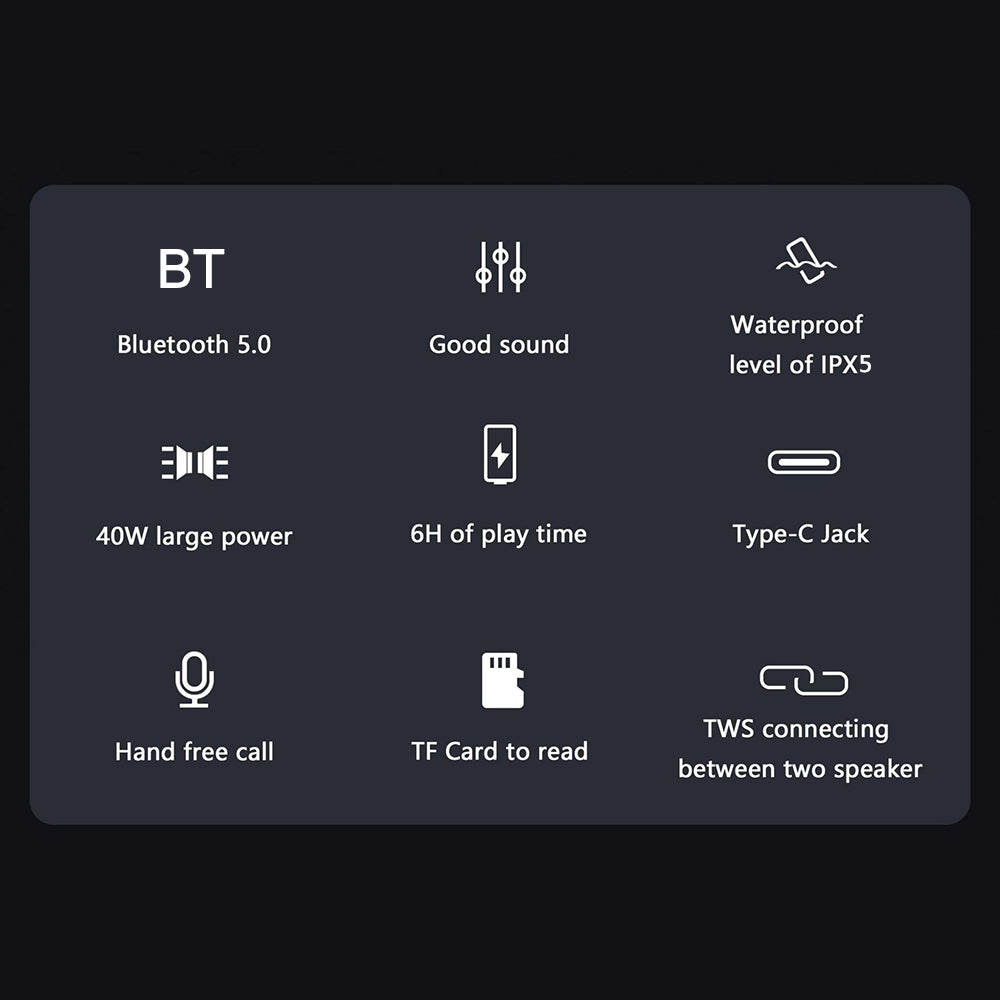 X5 Portable Rechargeable Bluetooth Speaker 40W Waterproof Outdoor TWS Wireless Stereo Subwoofer