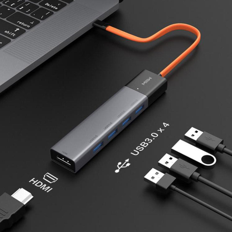 - This is a USB-C hub to 4*USB 3.0+1*HD video output adapter