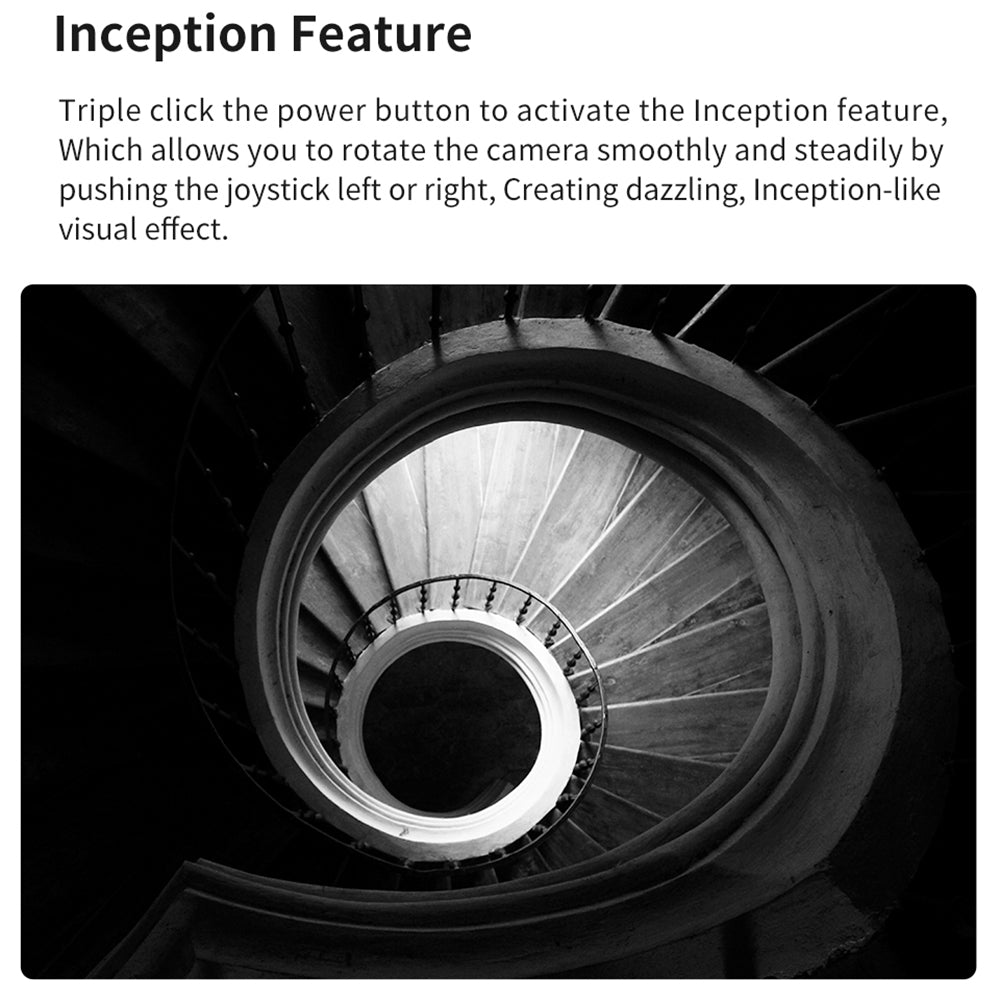 - Triple click the power button to activate the inception feature, which allows you to rotate the camera smoothly and steadily by pushing the joystick left or right