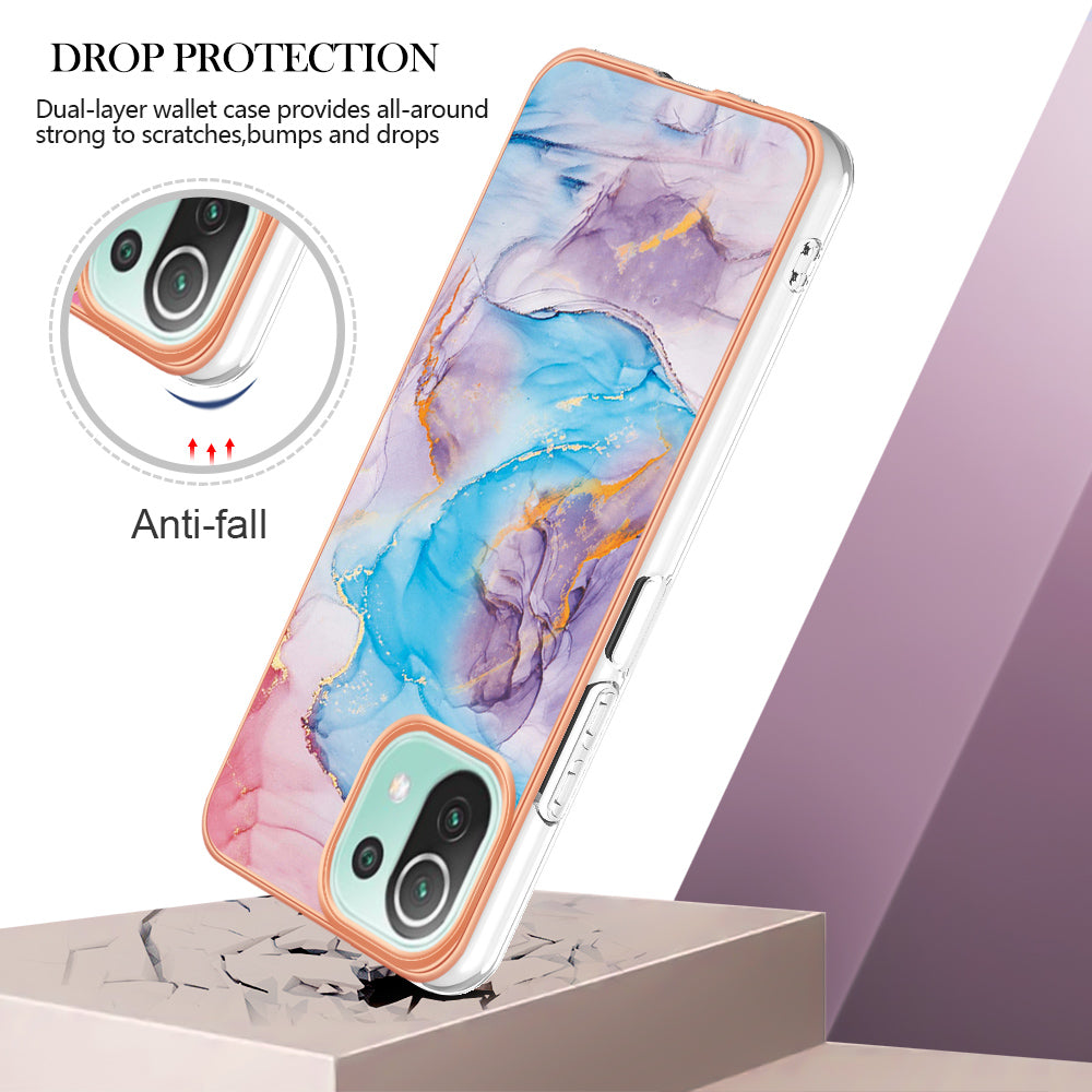 YB IMD Series-1 Phone Back Protector for Xiaomi Mi 11 Lite 4G / 5G / 11 Lite 5G NE Marble Floral Pattern Electroplating TPU Cover