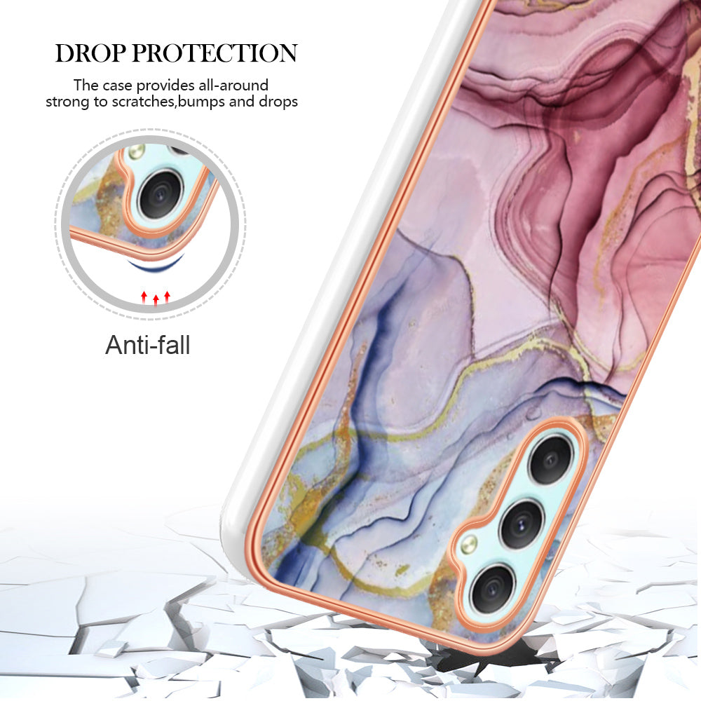 YB IMD Series-16 Style E TPU Back Case for Samsung Galaxy A24 4G , IMD 2.0mm Electroplating Marble Pattern Phone Cover