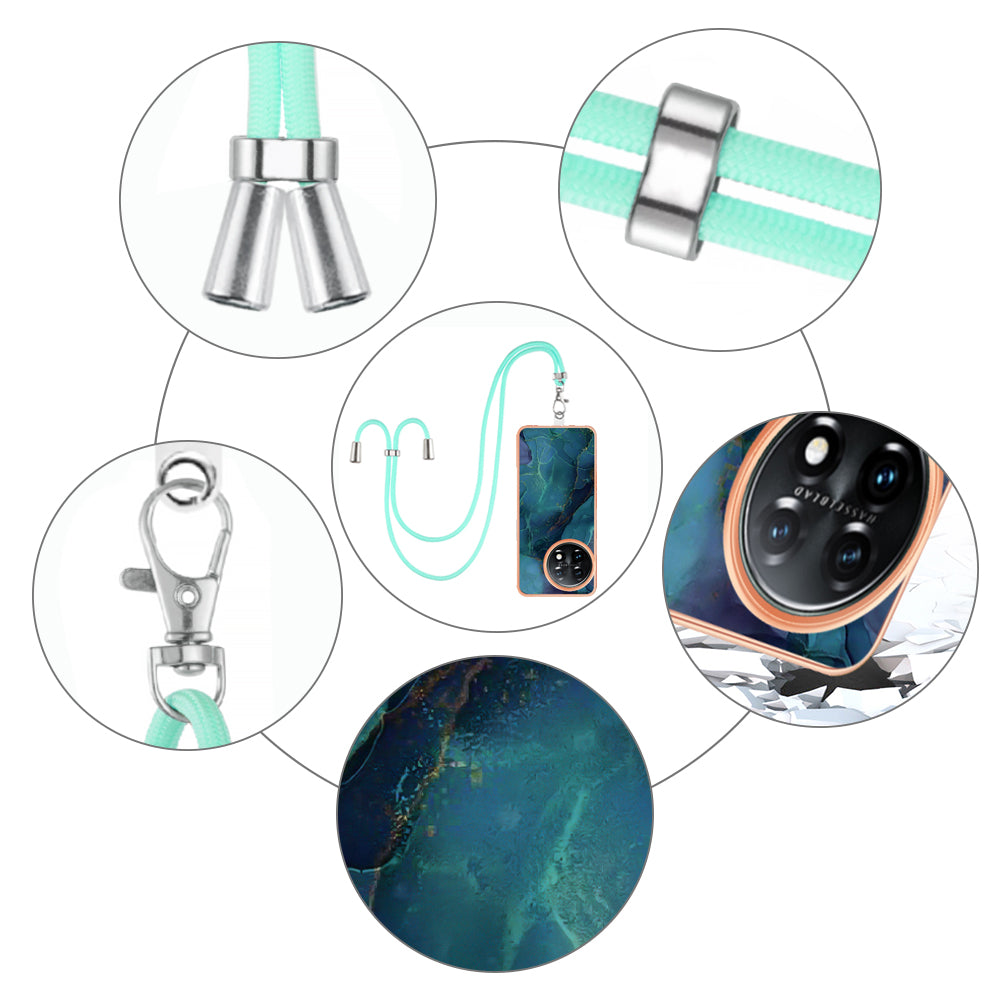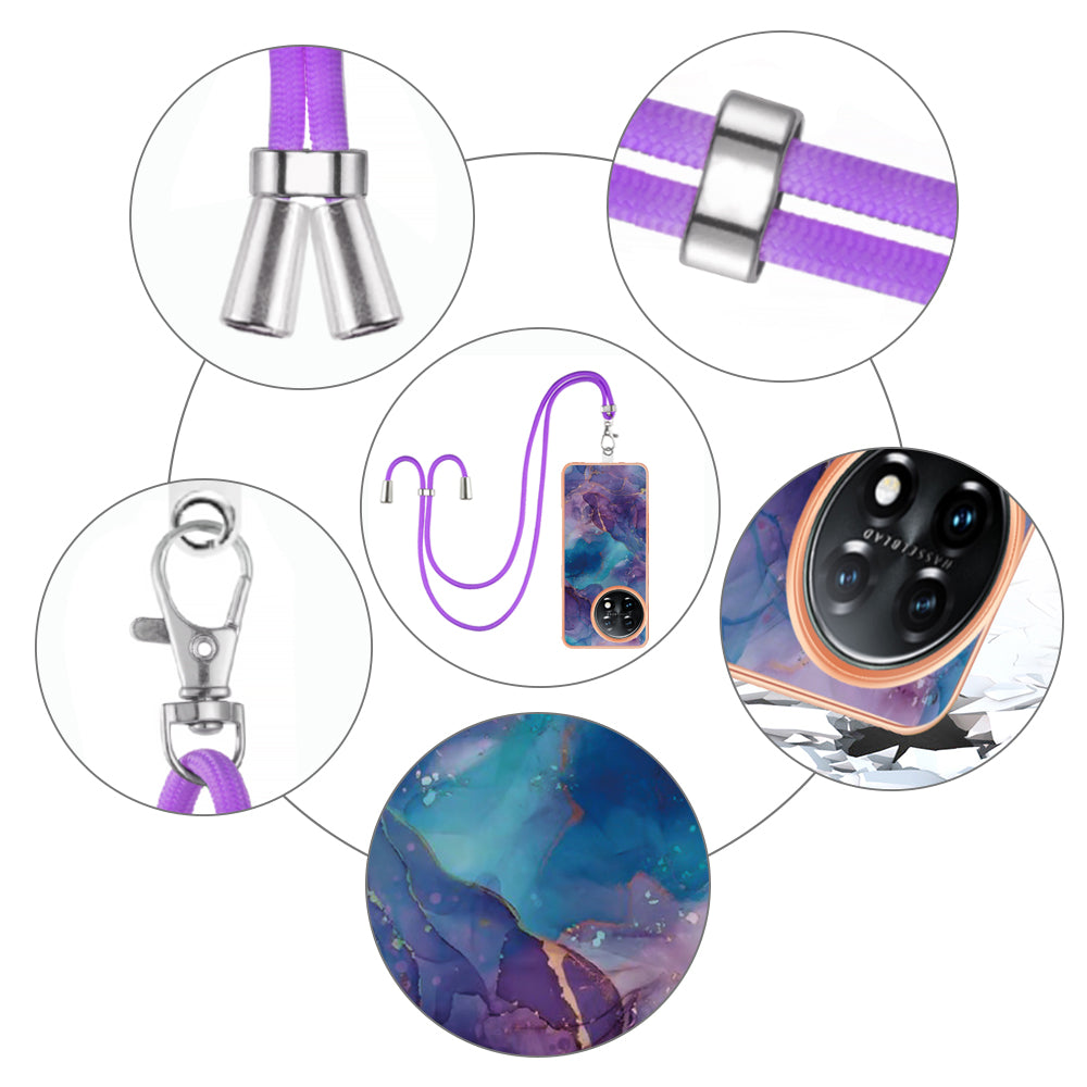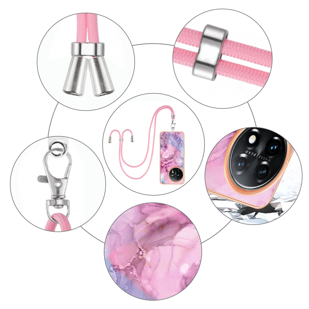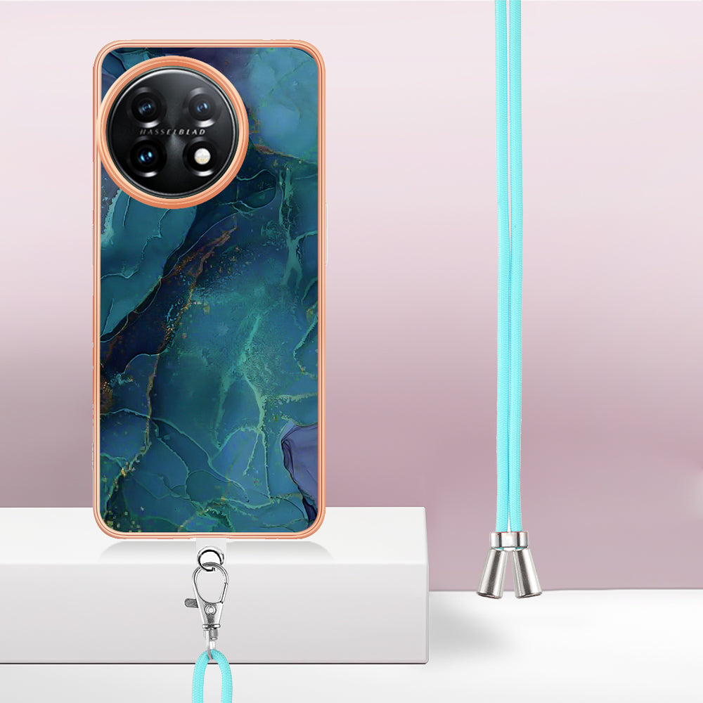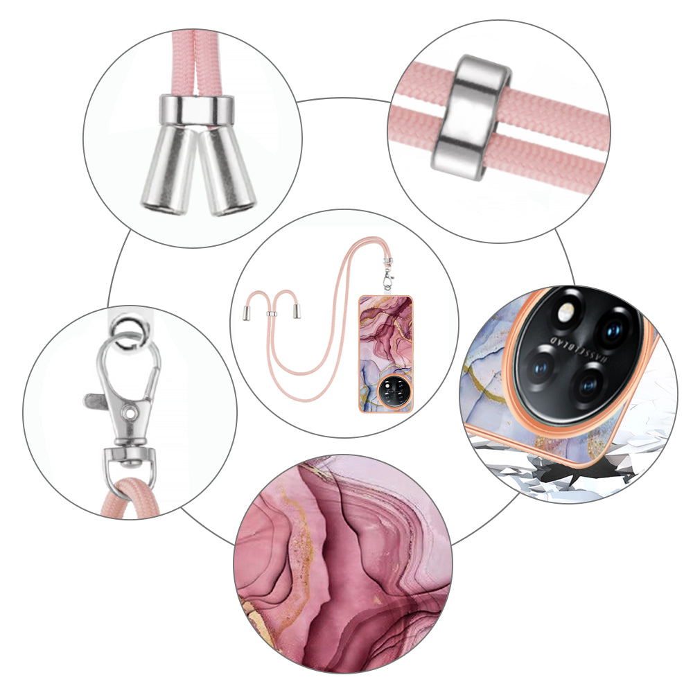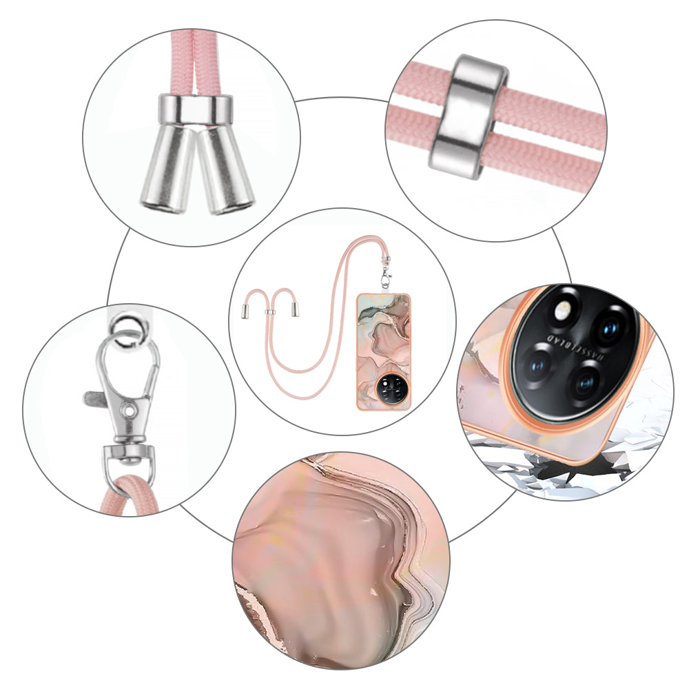 YB IMD Series-18 Style E for OnePlus 11 5G Flexible TPU Case Marble Pattern 2.0mm Electroplating Phone Cover with Lanyard