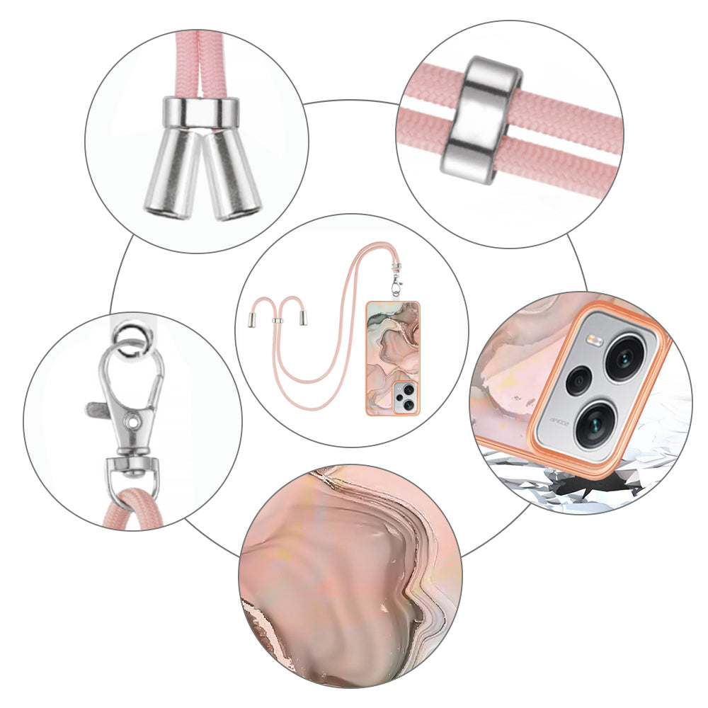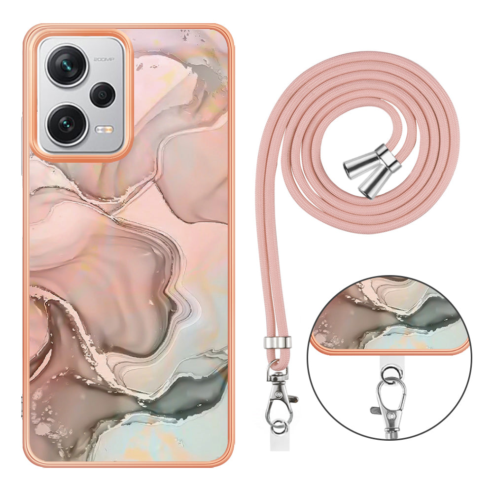 YB IMD Series-18 Style E for Xiaomi Redmi Note 12 Pro+ 5G Marble Pattern 2.0mm TPU Case IMD Electroplating Phone Cover with Lanyard