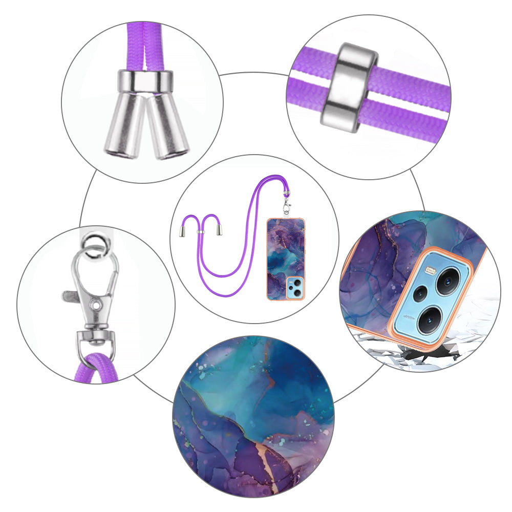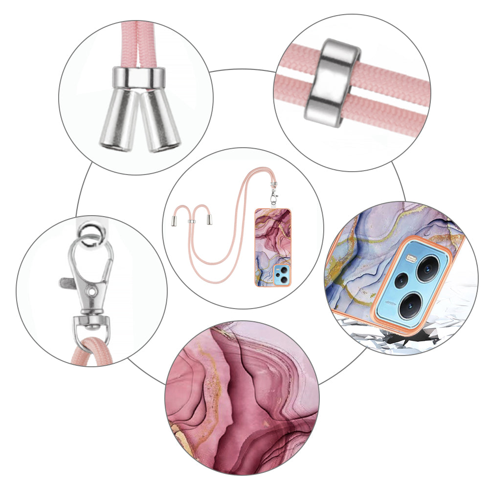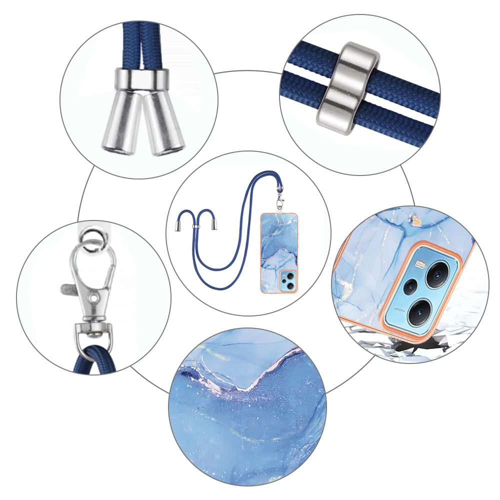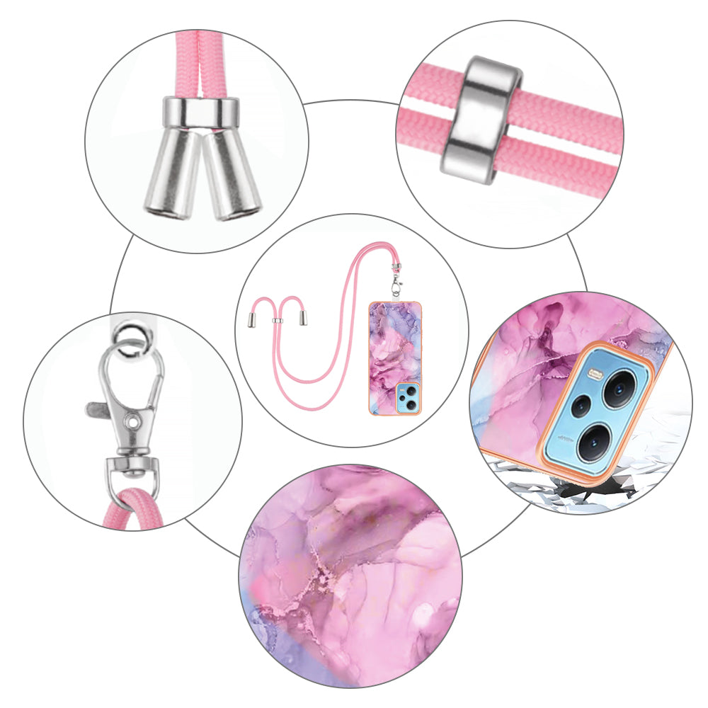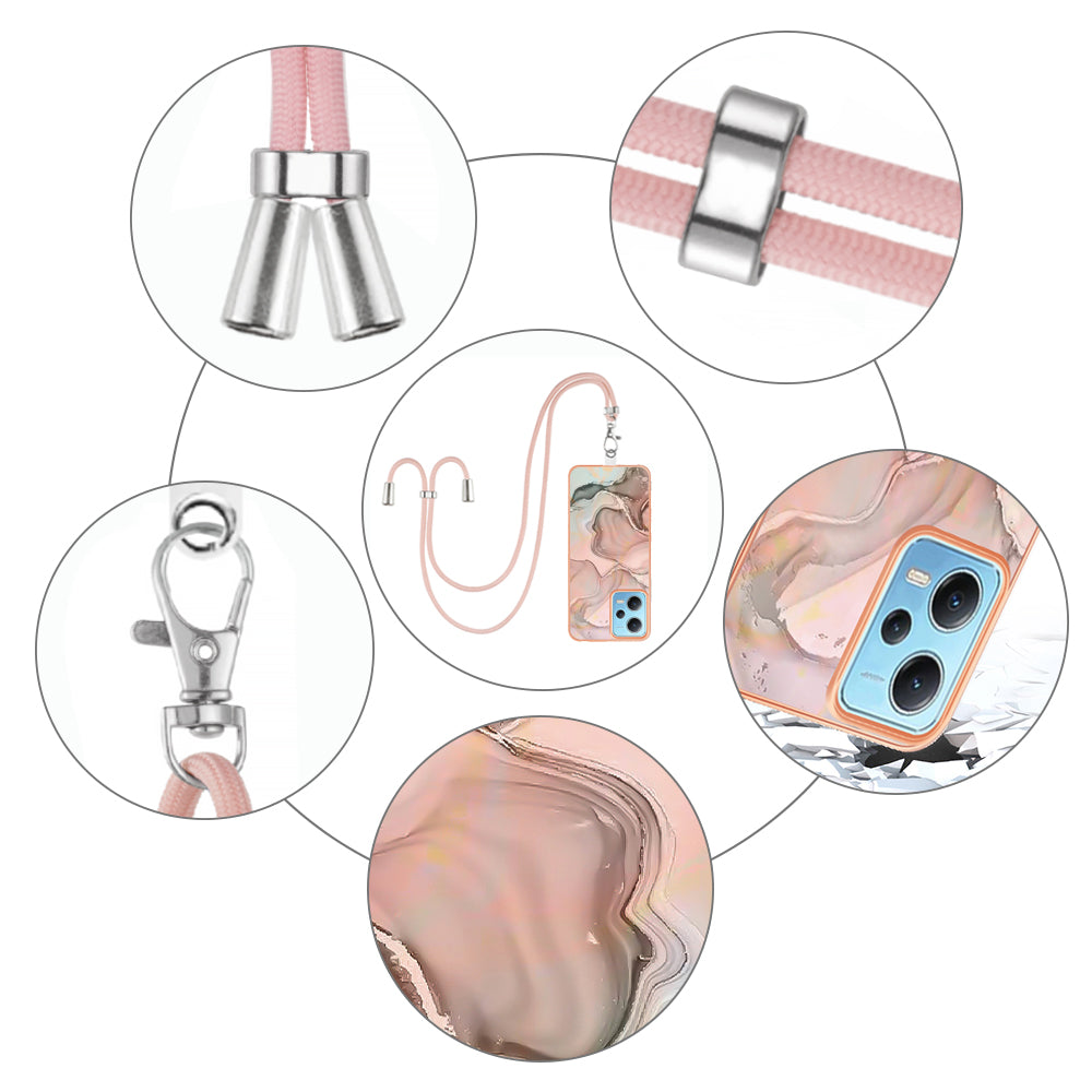 YB IMD Series-18 Style E Phone Case for Xiaomi Redmi Note 12 5G (China) / (India) / (Global) / Poco X5 5G , IMD Marble Pattern 2.0mm TPU Cover with Lanyard