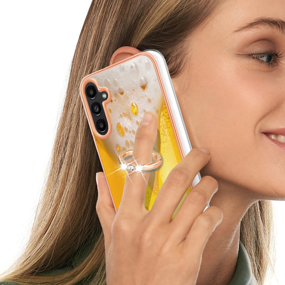 YB IMD Series-20 Style D for Samsung Galaxy A54 5G TPU Phone Cover IMD Pattern 2.0mm Electroplating Case with Kickstand