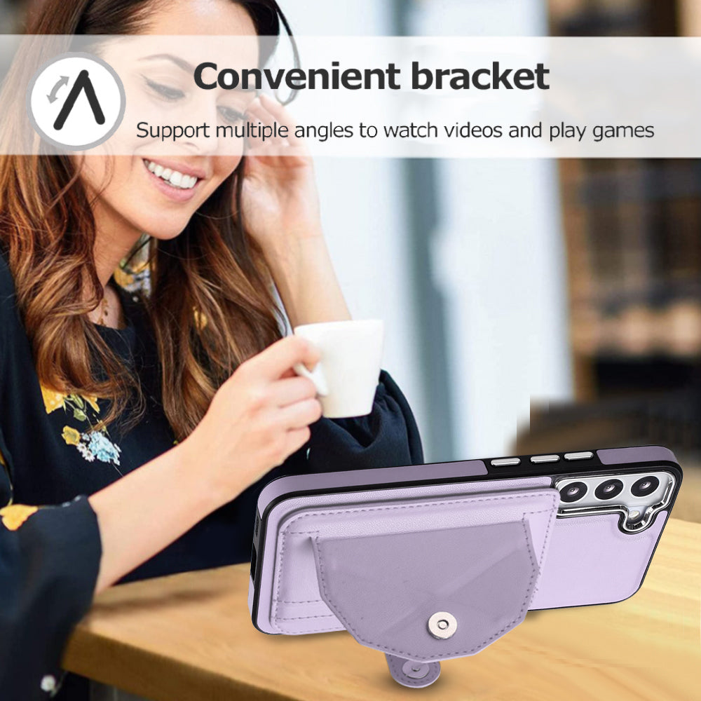 - The card holder can act as a kickstand to support the phone for hands-free watching
