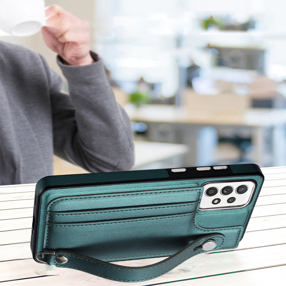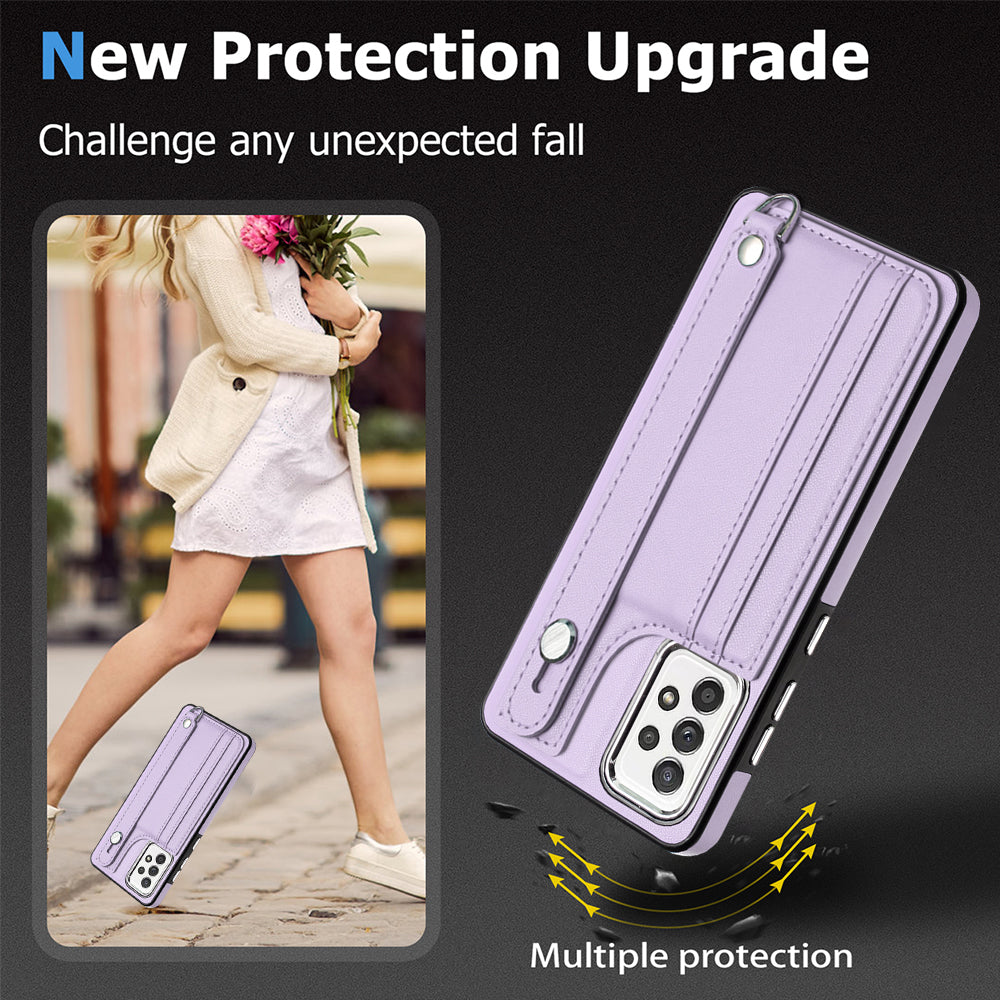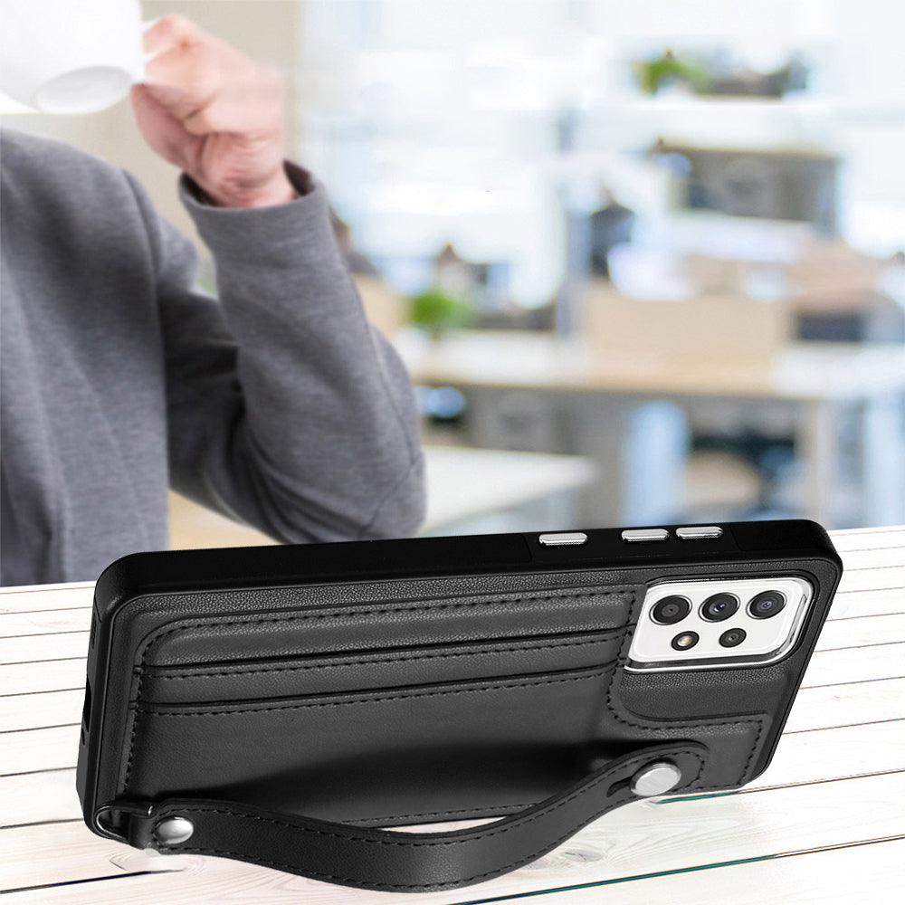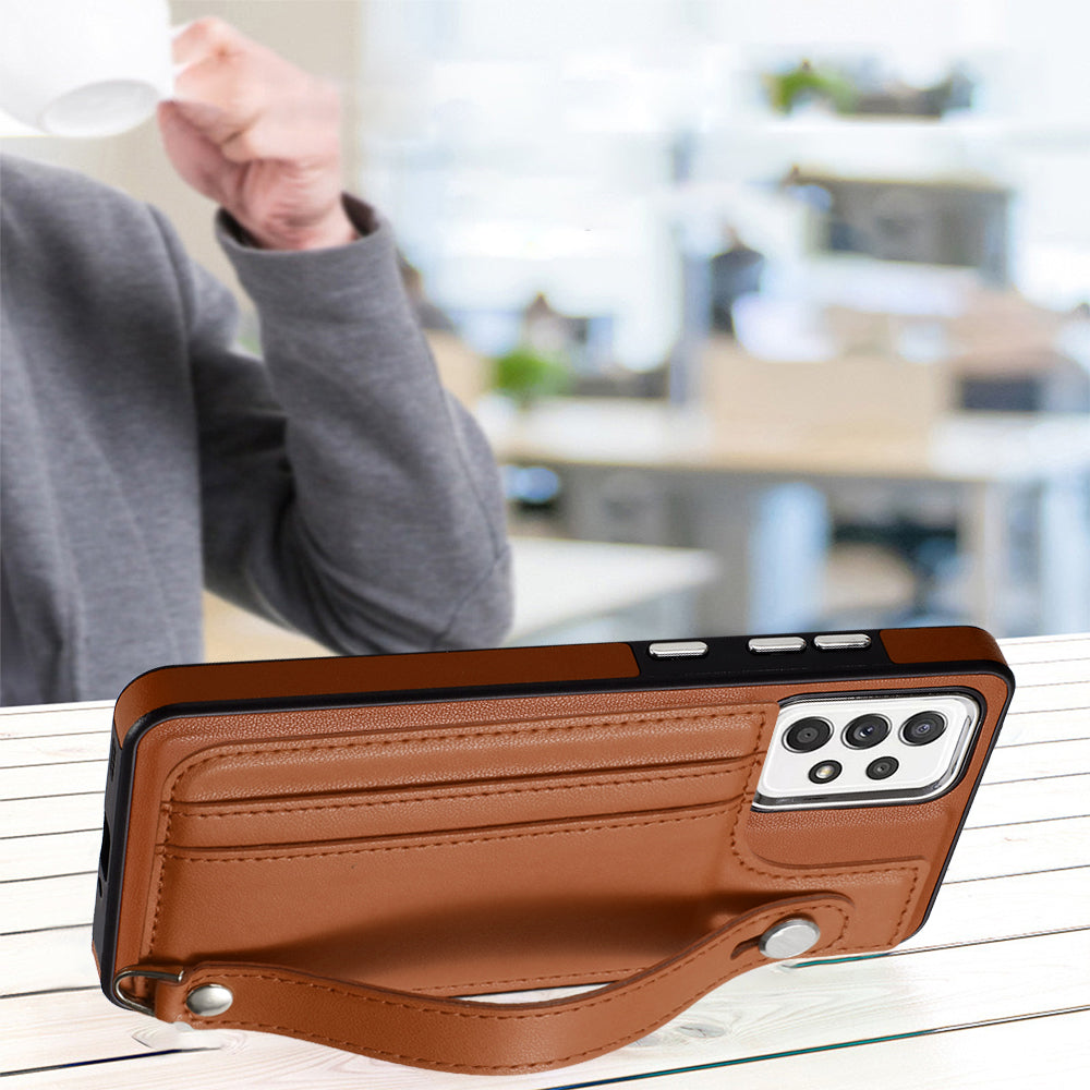 YB Leather Coating Series-5 For Samsung Galaxy A73 5G Mobile Phone Cover Card Slots PU Leather+TPU Kickstand Case