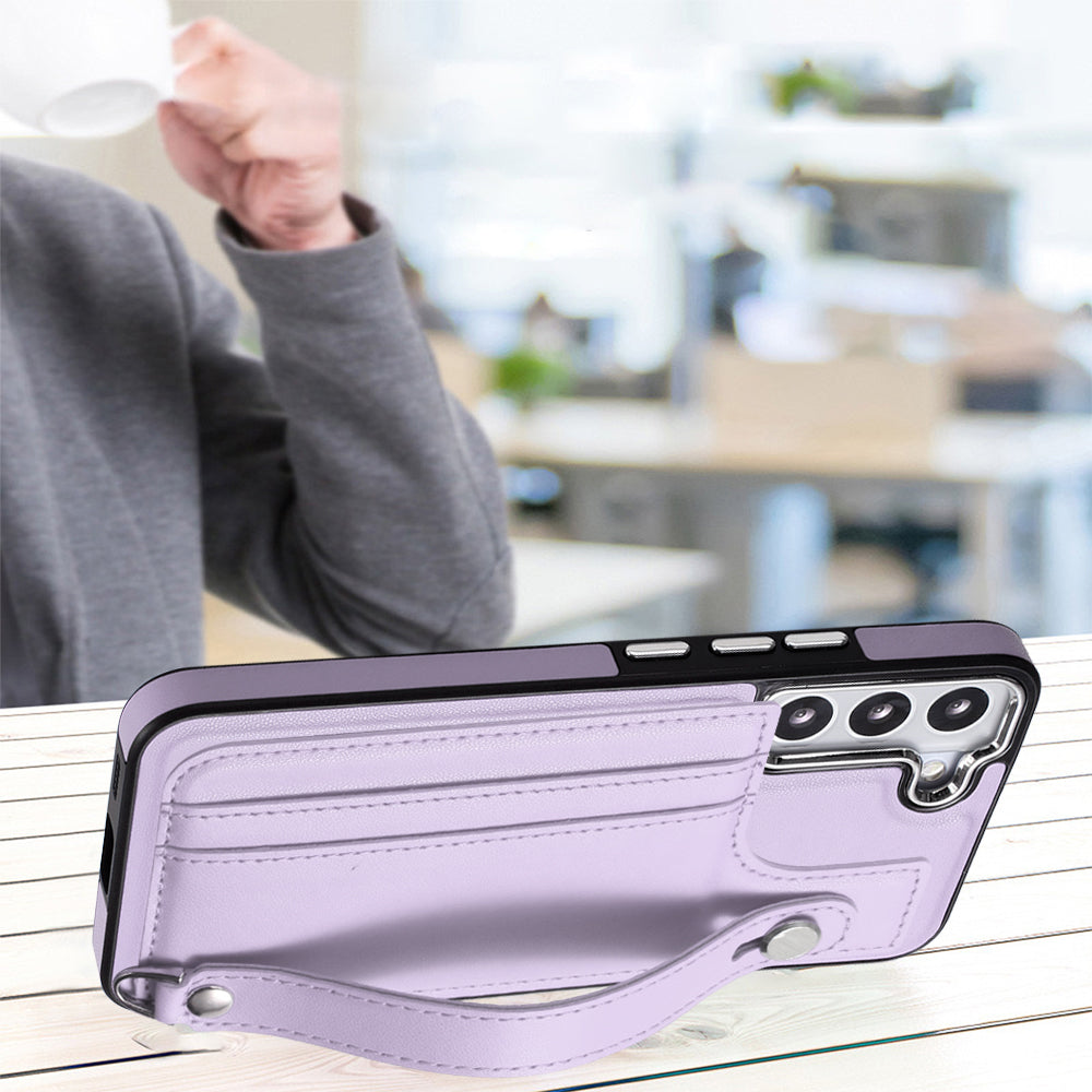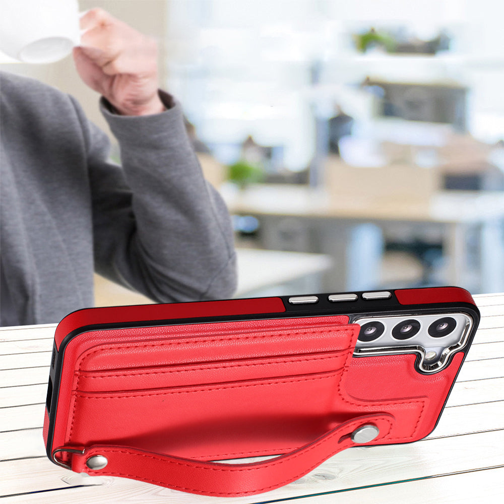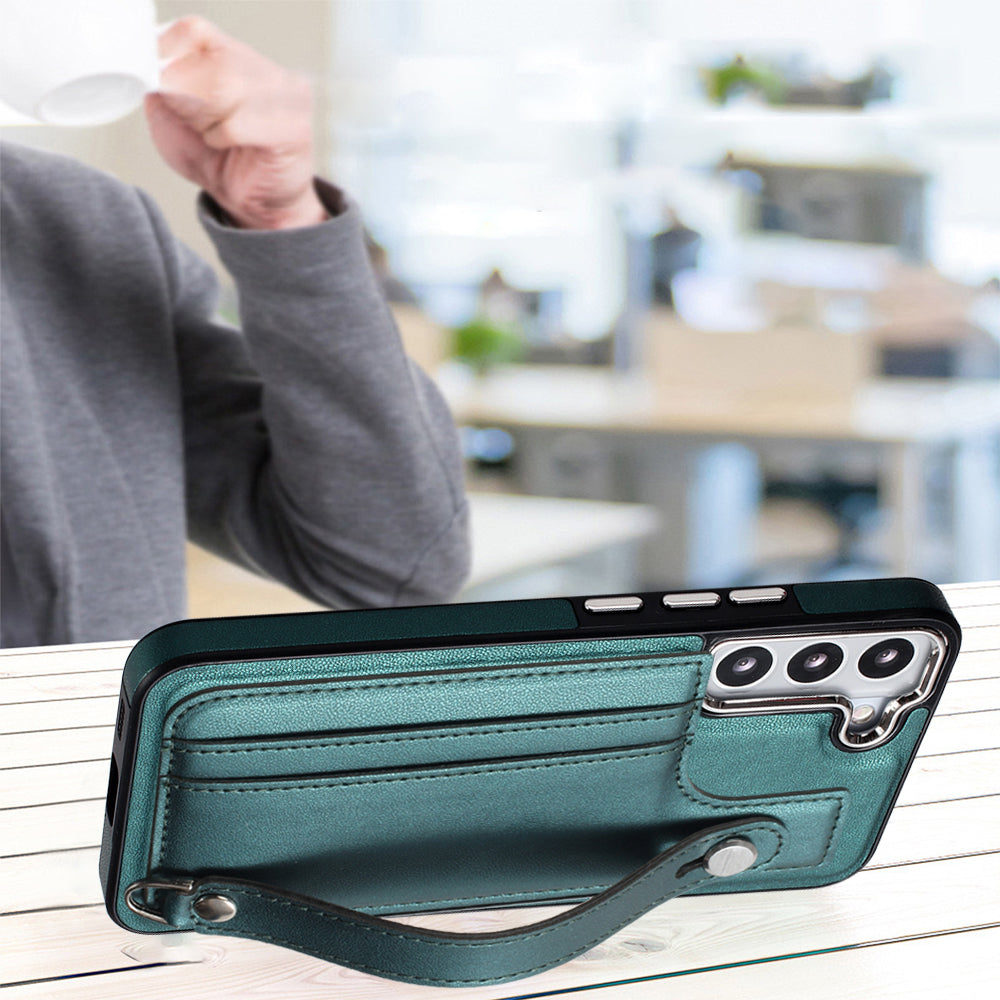 YB Leather Coating Series-5 For Samsung Galaxy S22 5G Card Slots Scratch-proof Cover Leather Coated TPU Kickstand Case