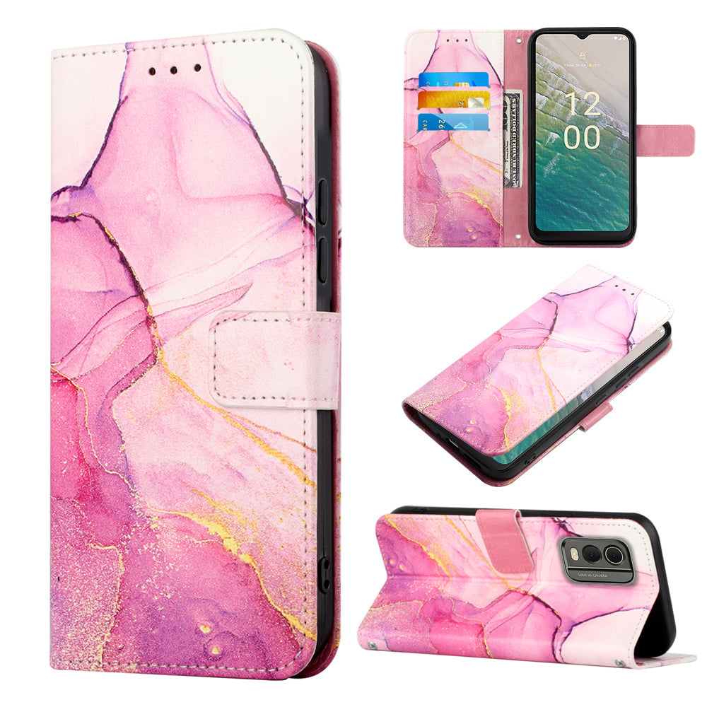YB Pattern Printing Leather Series-5 for Nokia C32 (TA-1534) Marble Pattern Phone Case Wallet Stand Cover with Strap