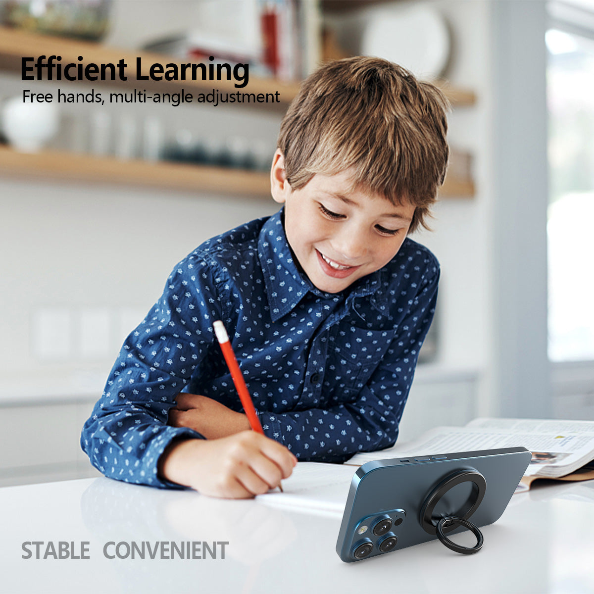 - The adhesive on the back of the ring stand can stick firmly on your phone or phone case