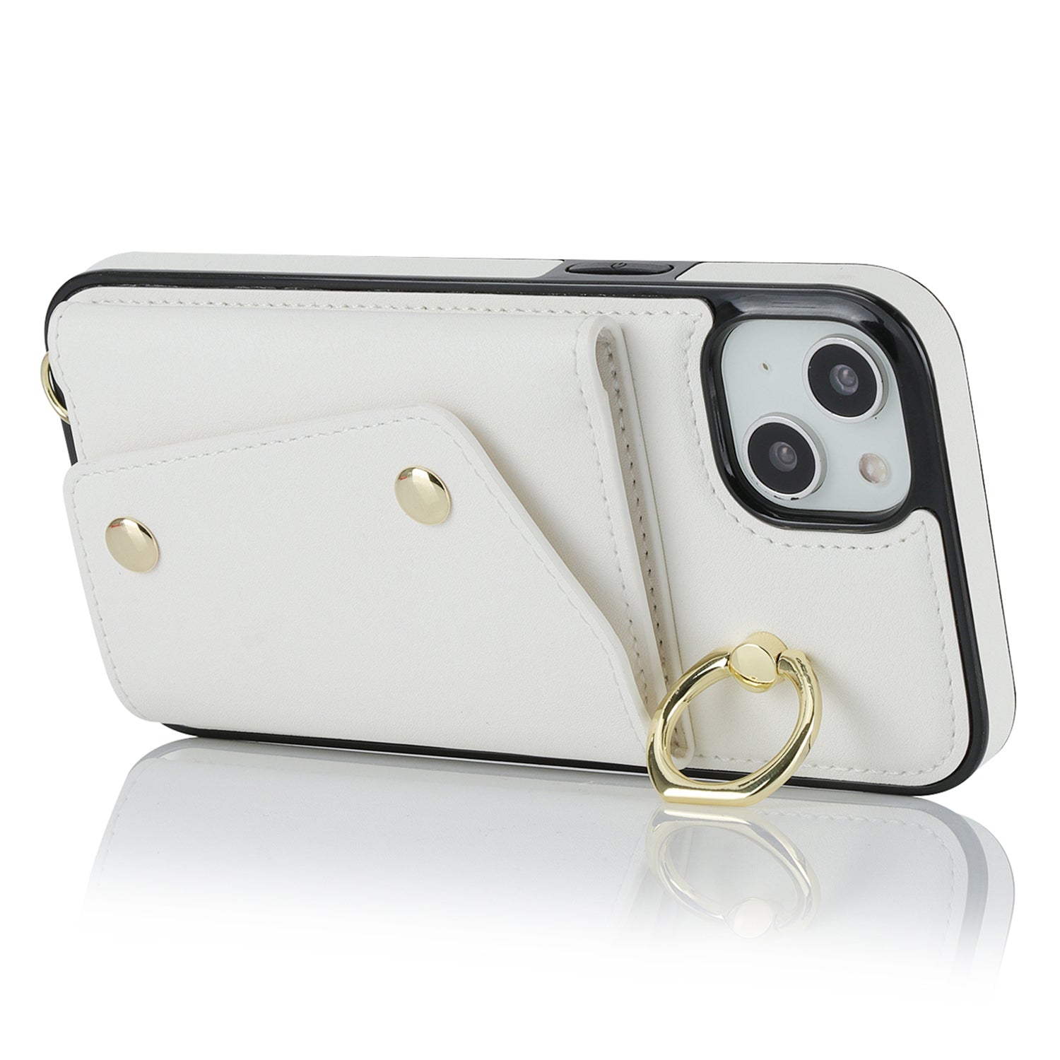 Zipper Wallet Leather Coated TPU Phone Case for iPhone 14 Ring Holder Kickstand Phone Cover