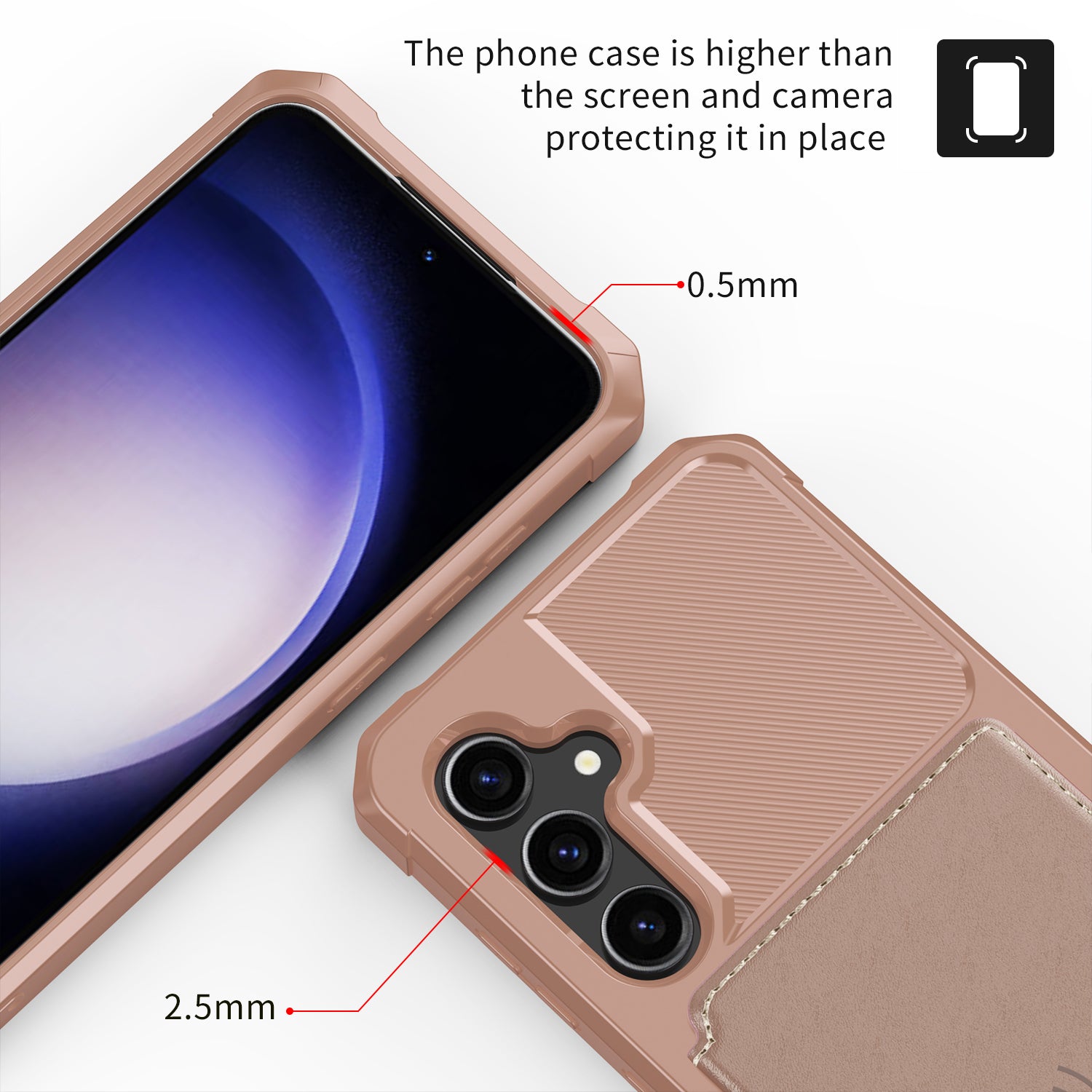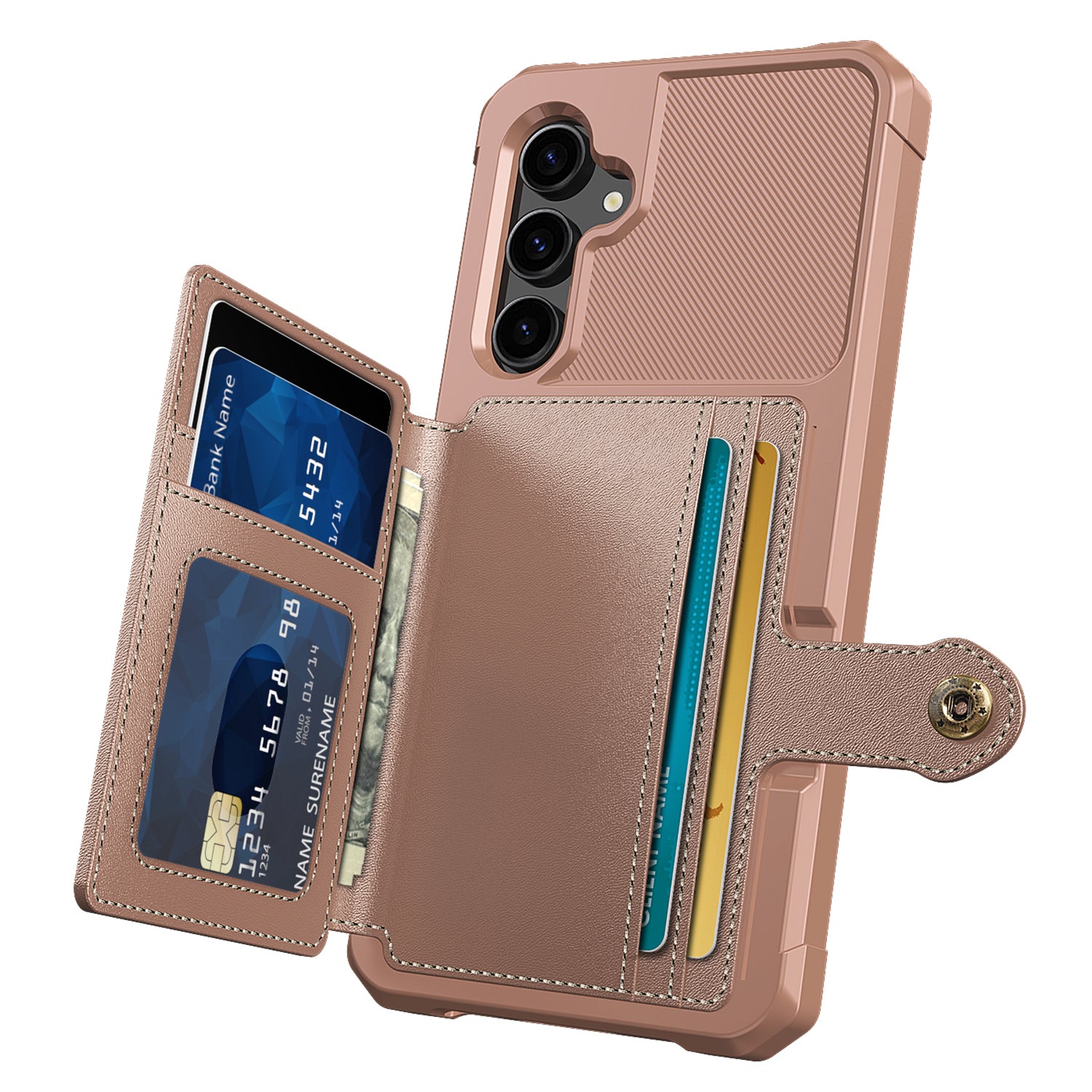 ZM03 For Samsung Galaxy S23 FE Card Holder Kickstand Phone Case PU Leather Coated TPU Back Cover